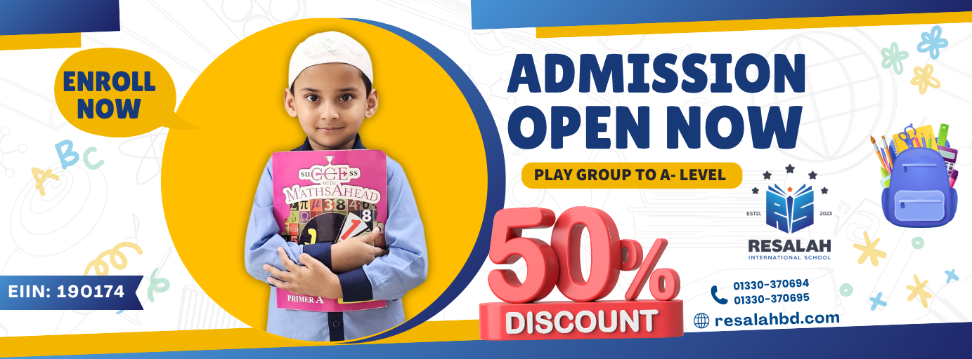 The Resalah International School is recognized by the Bangladesh Ministry of Education and authorized by British Council and Edexcel as an English –medium educational institution for both Primary and Secondary Sections.