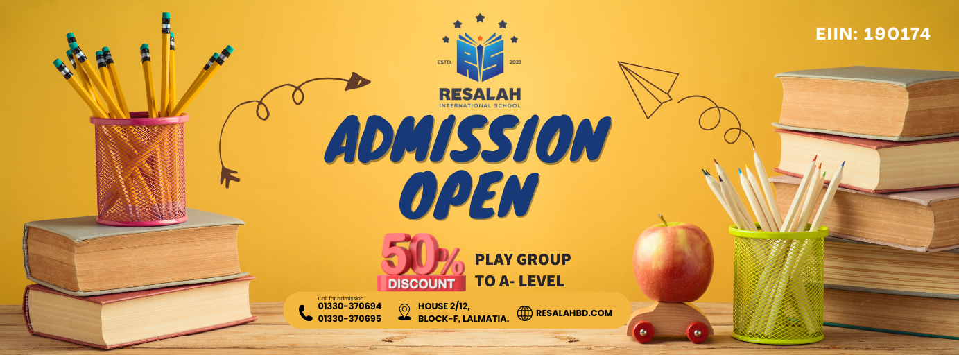 Resalah International School is a beacon of educational excellence, dedicated to nurturing curious minds and compassionate hearts. With a commitment to holistic development, we provide a dynamic learning environment that fosters creativity, critical thinking, and cultural appreciation. Our international curriculum, infused with innovation and global perspectives, prepares students to thrive in an interconnected world. Guided by experienced educators and supported by state-of-the-art facilities, students embark on a journey of discovery and personal growth. Rooted in values of integrity, respect, and inclusivity, we empower learners to become responsible global citizens, equipped to lead with empathy and make a positive impact on society.